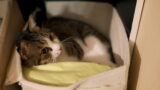 - 空くんと爪とぎが一緒に納まるように撮った